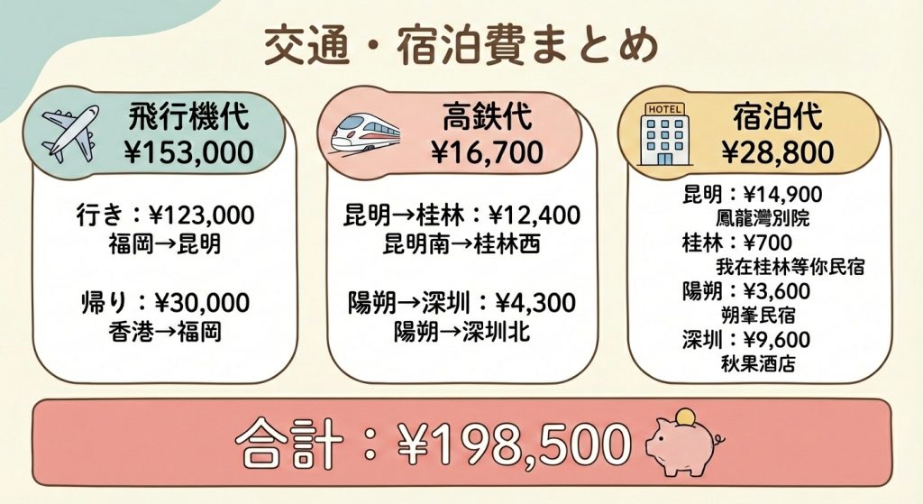 中国ひとり旅で実際にかかったお金をまとめた画像です。