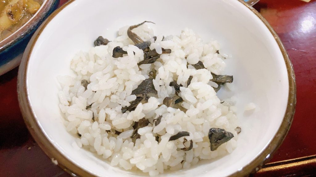 そしてこのきのこ混ぜご飯、これも超絶美味しい!きのこの独特な風味とご飯に混ざった油分で人を選ぶ美味しさですが、私はかなり好きです。
