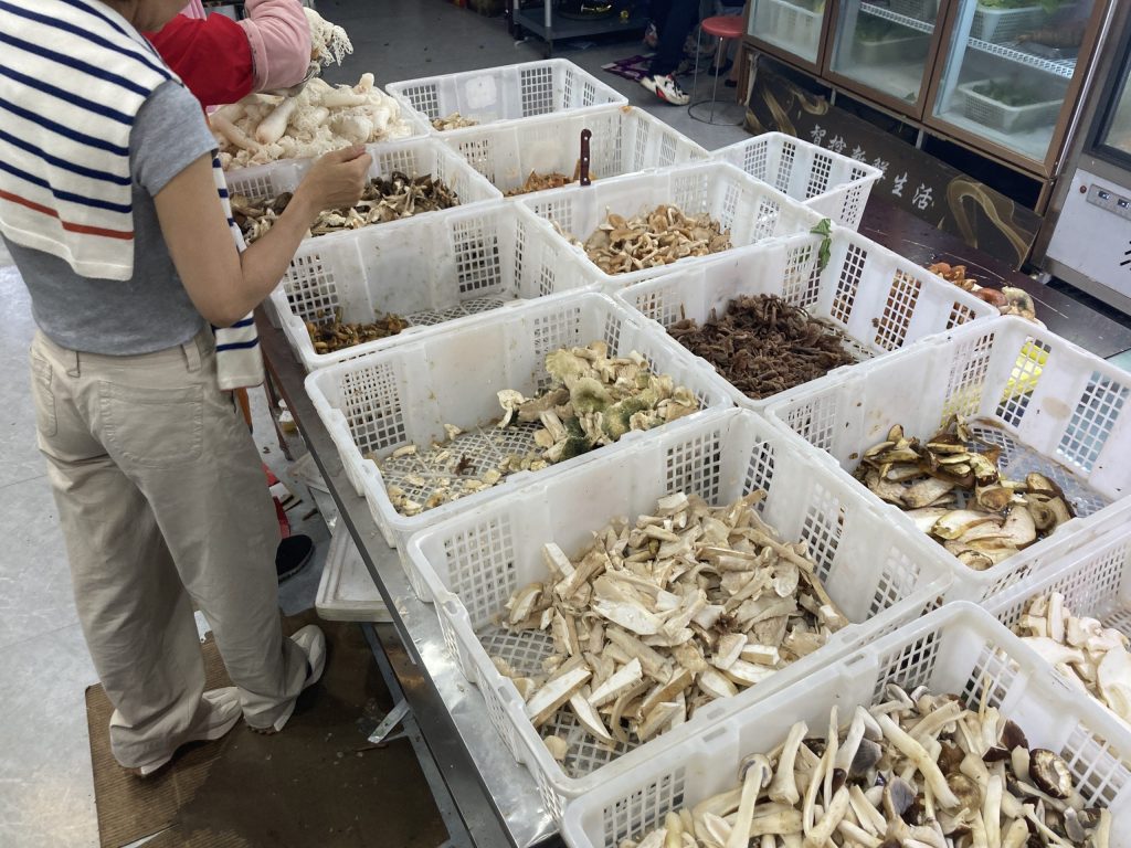 好きなきのこをお皿に盛りつけて自分たちのテーブルに向かいます。