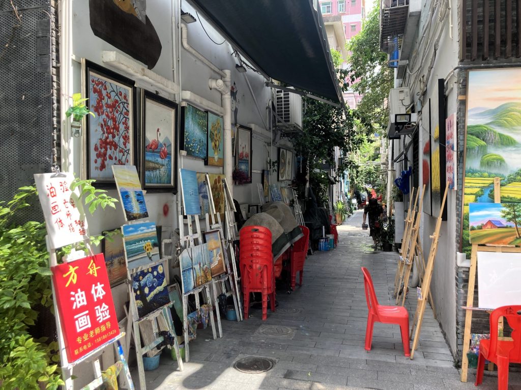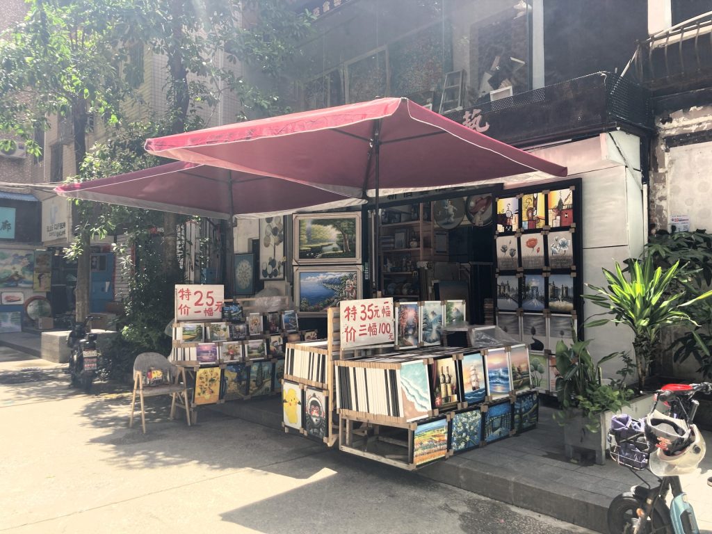メインは大芬油画村(Dàfēn Yóuhuà Cūn)です。画家が集まった街の一角で、とにかくたくさん絵画が見られるそうです。お気に入りを探しに行きます。