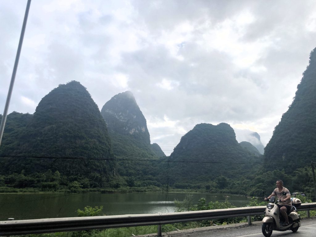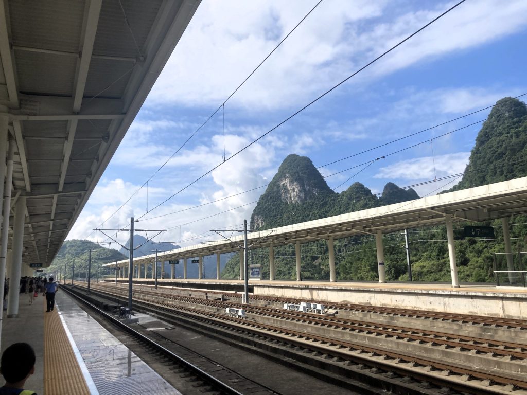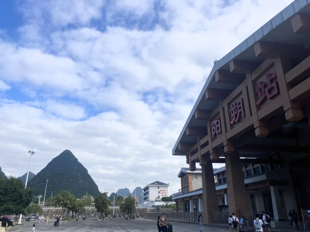 阳朔站(Yángshuò Zhàn、陽朔駅、ようさくえき)まで1時間の道のりです。