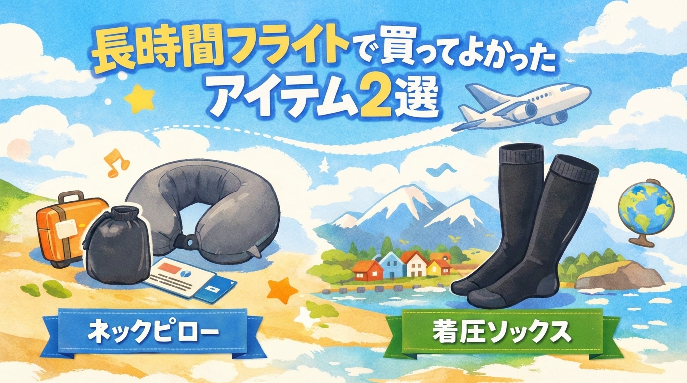 長時間フライトを少しでも楽にしたいなら、まずはこの2つから試してみるのがおすすめです。
